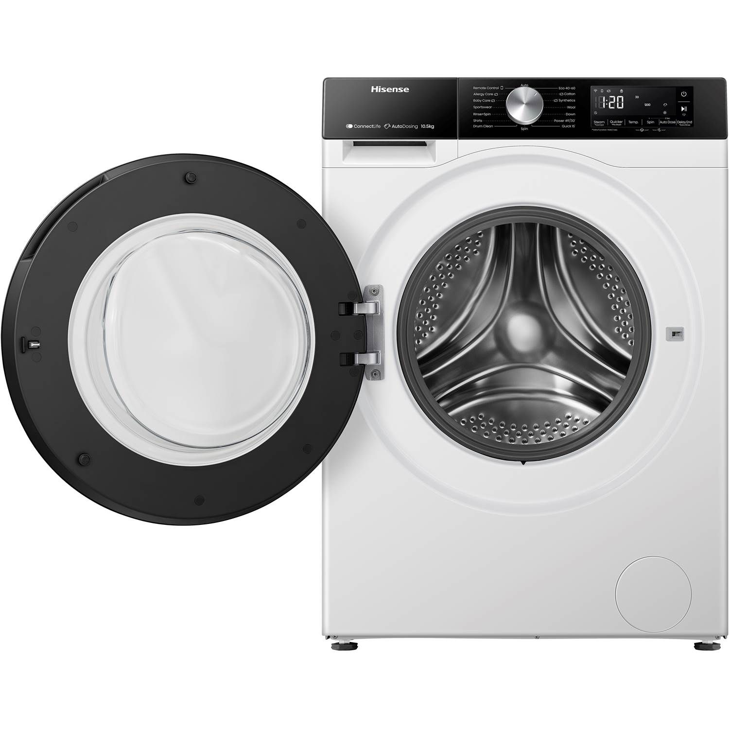 Hisense vaskemaskine WF3S1045BW3 byder på avanceret teknologi og smarte funktioner, der gør vask nemmere og mere effektivt. Med energiklasse A og en kraftig Inverter PowerDrive kan du nyde at vaske i stilhed og samtidig få reduceret elregningen. Denne vaskemaskine gør hverdagen nemmere med et brugervenligt LED-display, flere smarte funktioner som Pause & Add og Delay End, samt de uendelige muligheder, ConnectLife-appen giver.