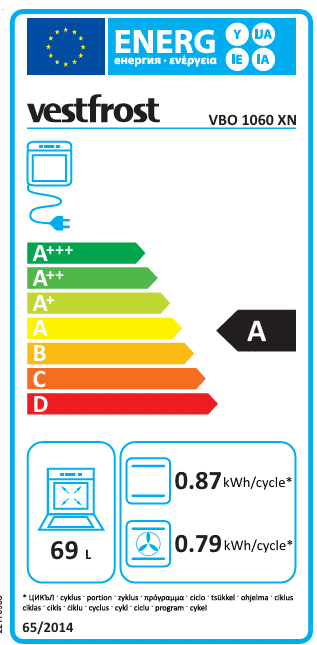 Vestfrost indbygningsovn med ovnrum på 69 L. Læs hele beskrivelsen