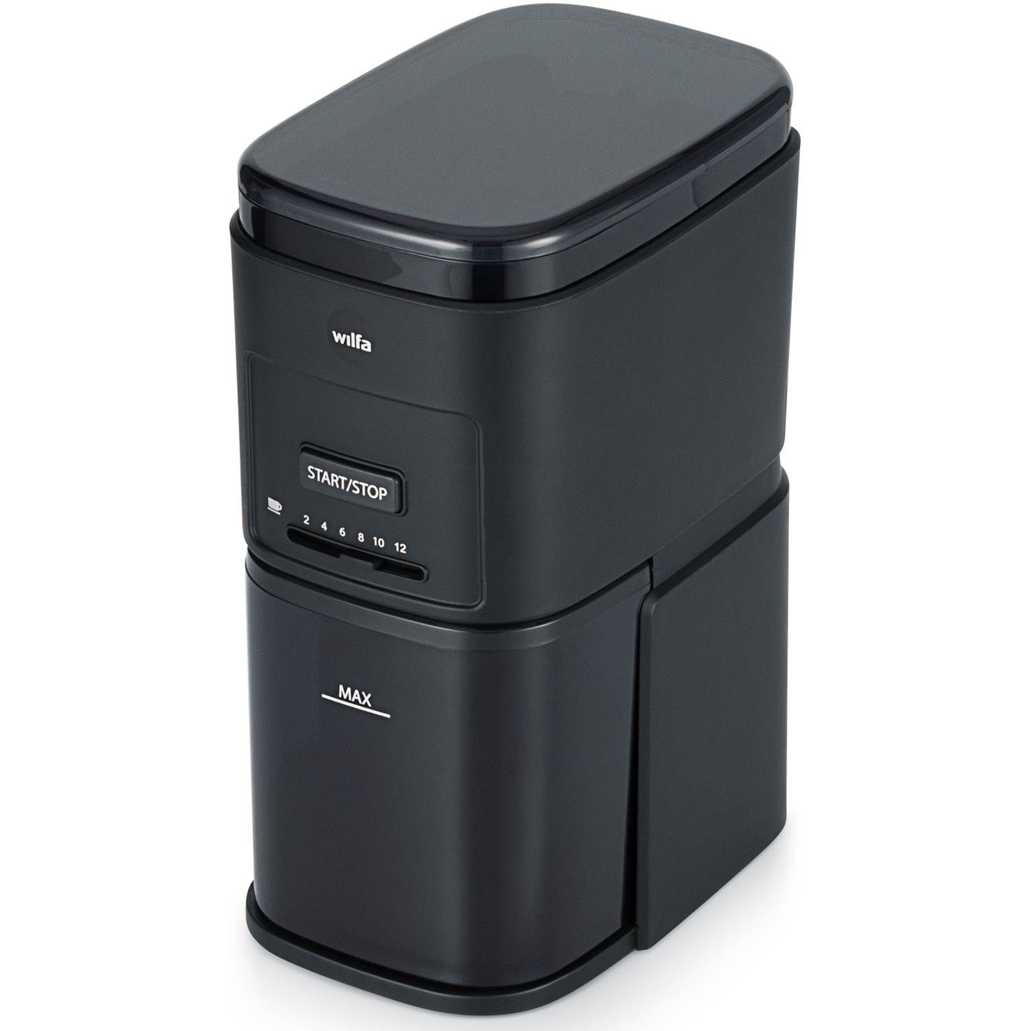 Kaffekværnen har en skyder til det antal kopper du ønsker at male og 12 forskellige maleniveauer. Malegraden kan indstilles fra fin til grovmalet kaffe, og til enhver størrelse derimellem.